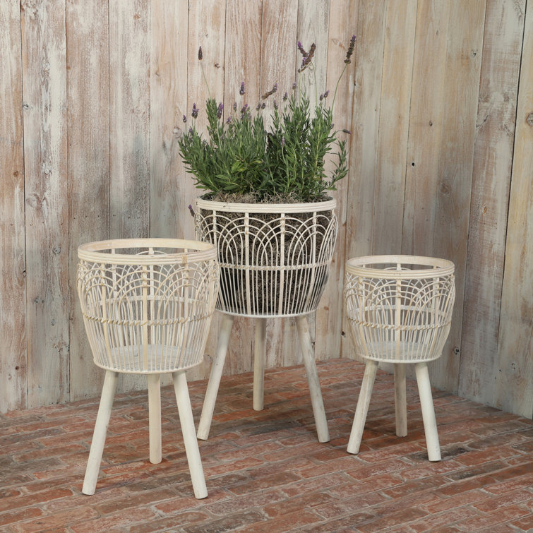 Corrigan Studio 3 Piece Set Bamboo Planter Pots On Tripod Stands Indoor And Outdoor White 15 L X 15 W X 26 H Inches Wayfair